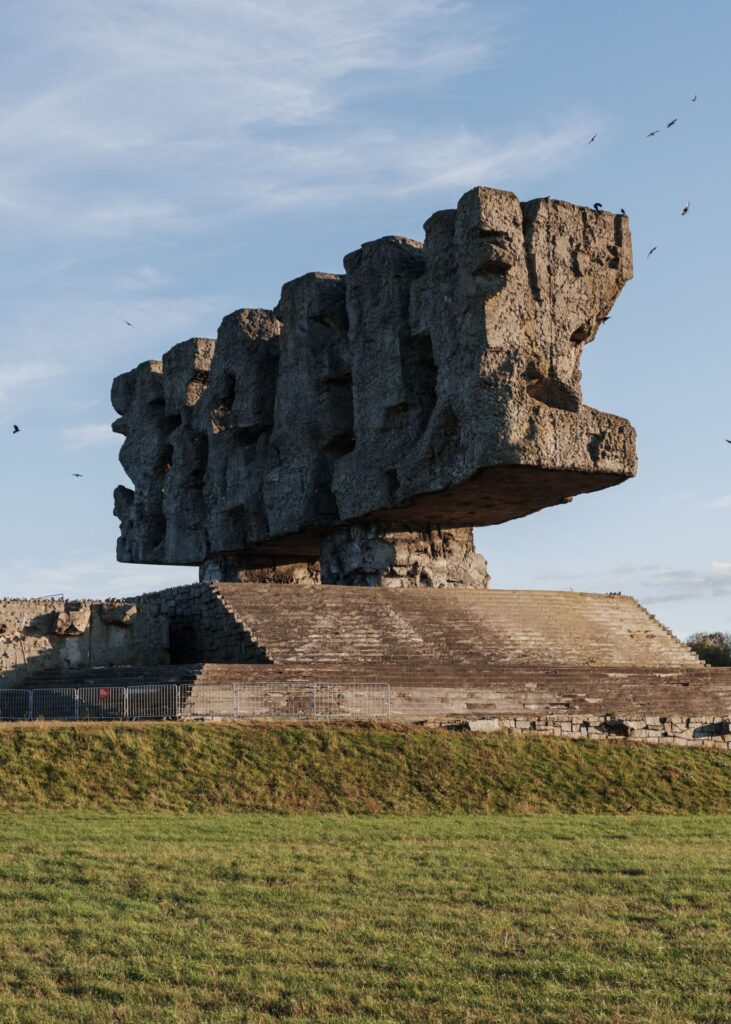 Wiktor Tołkin, człowiek, który sam przeżył obóz koncentracyjny, wiedział, że nie można tego miejsca upamiętniać konwencjonalnie. Nie można tu postawić pomnika z figurą i tablicą. Trzeba było stworzyć przestrzeń, która sama w sobie będzie doświadczeniem – przejściem przez bramę piekła, długą drogą refleksji i wreszcie dotarciem do miejsca, gdzie spoczywają szczątki setek tysięcy zamordowanych ludzi. Pomnik walk i męczeństwa pokazuje ból, którego nie da się oswoić żadną formą estetyczną.