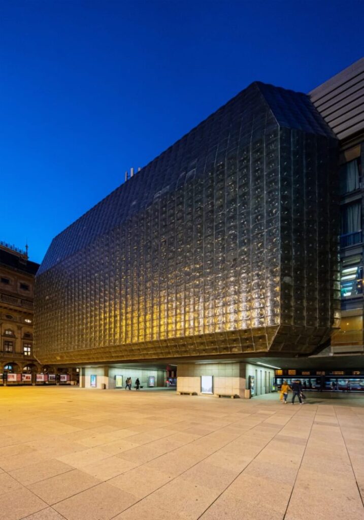 Z pozoru wygląda jak szklana rzeźba wyrzucona w środek zabytkowego miasta. Nová Scéna to efekt kilkudziesięciu lat zmagań z ideą stworzenia nowoczesnej sceny teatralnej w Pradze. Jej historia zaczęła się tuż po II wojnie światowej i przez dekady przetaczała się przez konkursy, spory i zmiany koncepcji. Ostatecznie stanęło na projekcie, który stał się ikoną modernizmu w Pradze, nie tylko ze względu na kontrowersje jakie towarzyszyły brutalistycznej fasadzie. Nová Scéna to także architektura wnętrz, która onieśmiela swoją elegancją i atmosferą.
