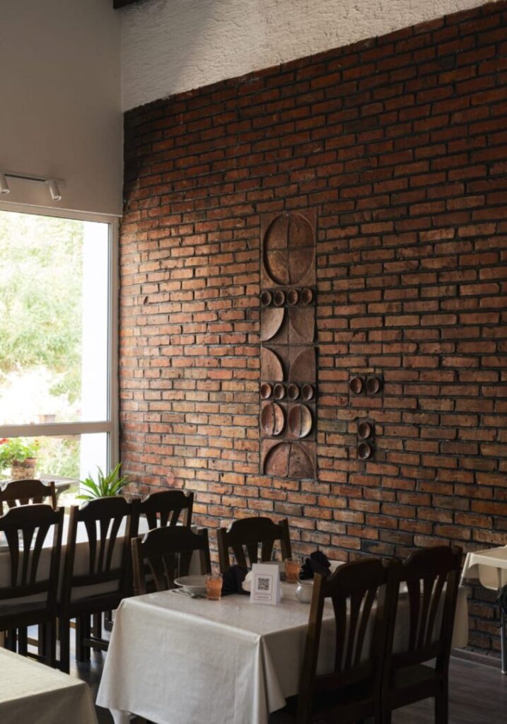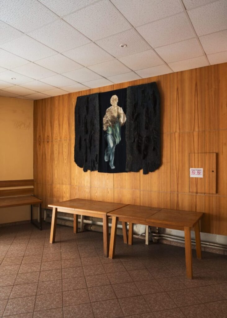 Ośrodek Stawiska to m.in. typowe, kanciaste, osadzone na skarpie z widokiem na jezioro pawilony hotelowe. Jeden z nich łączy się łącznikiem z jadalnią, w której zachowała się rzeźbiarska kompozycja – zapewne autorstwa Andrzeja Trzaski. Nie zachowała się dokumentacja, jednak styl znany z Domu Technika w Gdańsku czy pobliskiego Hotelu Gołuń wyraźnie wskazuje na tego artystę. Na fasadzie za to mieni się szklana mozaika z kaszubskim motywem kwiatowym. Ozdoba? Nie tylko. To też komentarz – wpisanie lokalnego kodu kulturowego w systemową architekturę. Trochę jakby beton próbował mówić językiem haftu.
