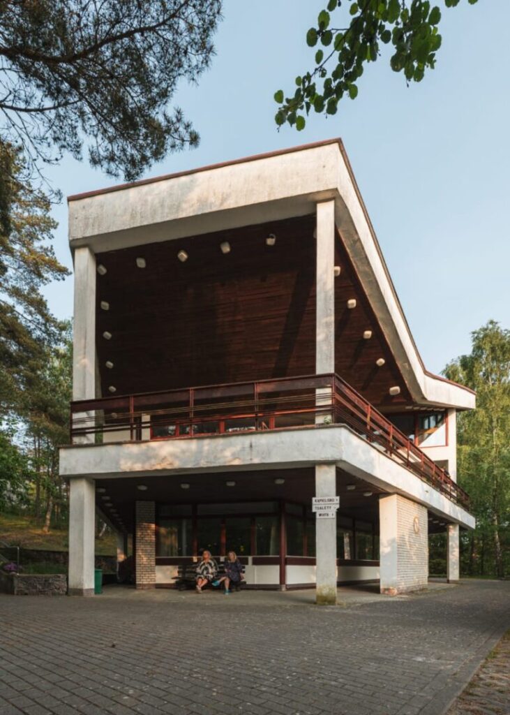 Na skarpie, w cieniu sosen i wstęg chmur odbijających się w lustrze jeziora, ktoś w 1972 roku wcisnął dwa proste modernistyczne budynki. I dobrze zrobił, bo dzięki temu mamy dziś do czynienia z miejscem wręcz kultowym. Ośrodek Stawiska w Stawiskach na Kaszubach to jedno z tych miejsc, które powstały nie z miłości do awangardy, ale z potrzeby. W rezultacie dały jednak architekturze więcej, niż niejeden konkursowy projekt z lat 60.