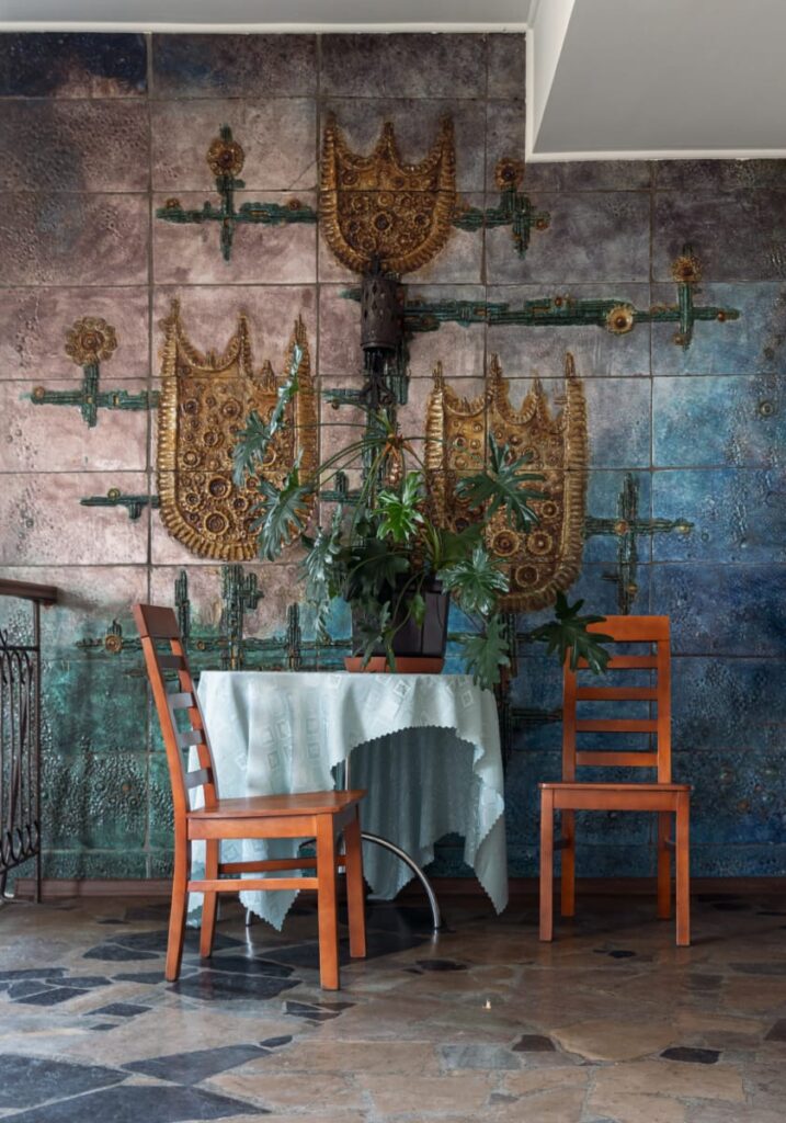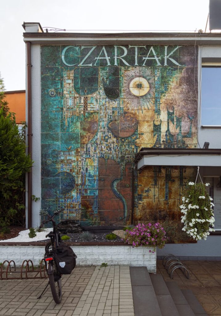 Wzrok przyciąga też neon, który niezmiennie podpisuje lokal charakterystyczną typografią. Choć dzisiaj „Czartak” to już przybytek o wyraźnie innym profilu niż w czasach swojej świetności, jego materialne pozostałości – zwłaszcza łysogórska ceramika – przypominają o czasach, gdy dekoracja miała znaczenie symboliczne. Projektowanie wnętrz niosło ambicję stworzenia totalnego dzieła sztuki. To nie był po prostu wystrój, ale opowieść o nowoczesności i folklorze. A nawet o tym, że w niewielkim zajeździe w Polsce powiatowej można było odnaleźć sztukę użytkową najwyższej próby.
